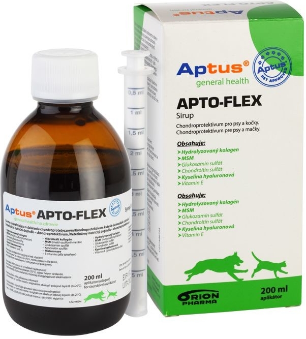 Veterinární nutriční doplněk pro psy a kočky. Solubilní chondroprotektivum nového typu, založené na ideální kombinaci tradičních substancí používaných pro podporu chrupavek a vazů (glukosamin sulfát, chondroitin sulfát, MSM), ke kterým jsou přidány vysoce účinná kyselina hyaluronová a kolagen.